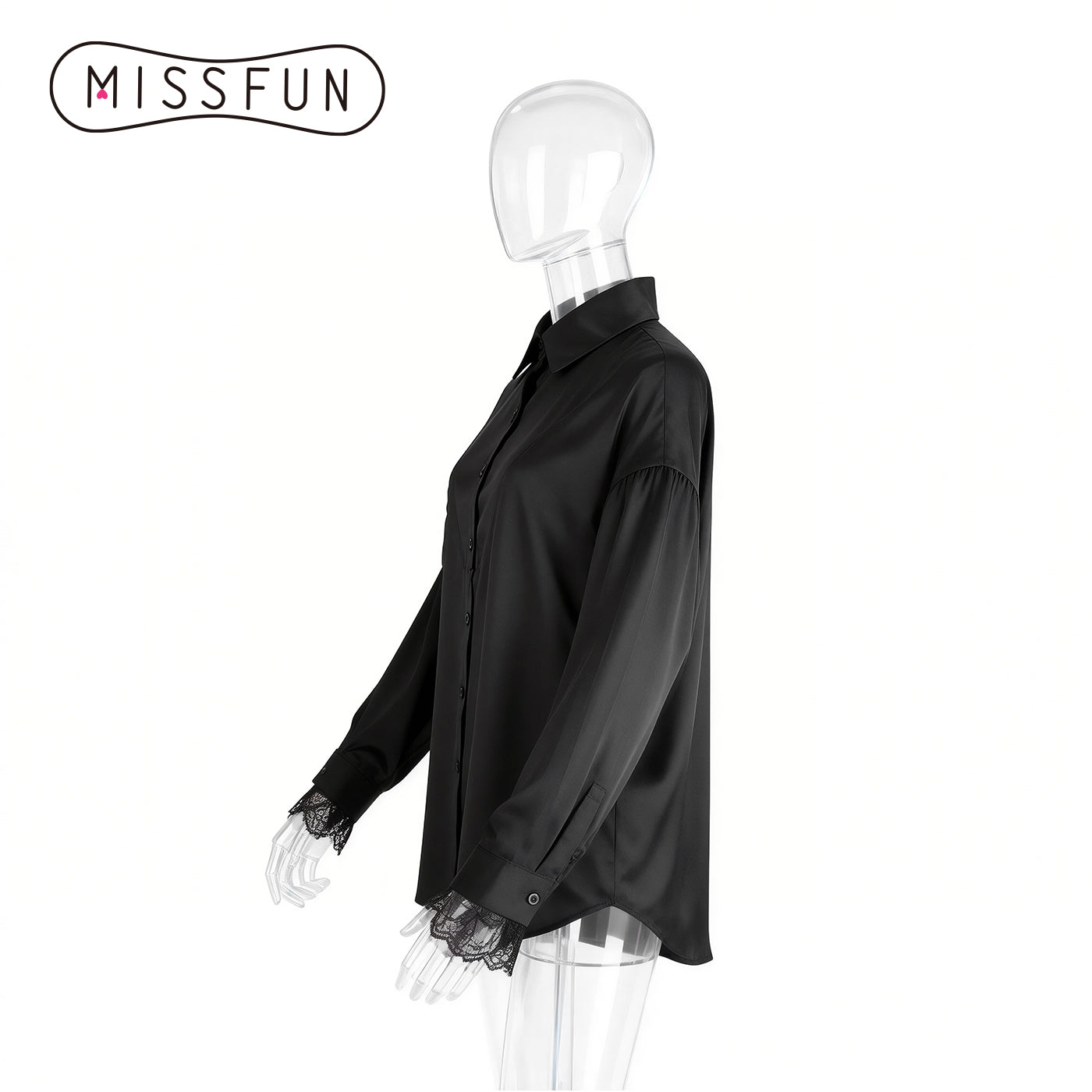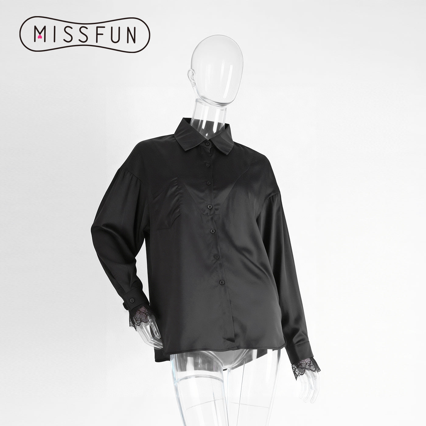 Effortlessly blend sophistication and edge with this black satin oversized shirt. Its luxe, fluid fabric drapes beautifully for a relaxed, chic silhouette, while delicate lace trim at the cuffs adds a romantic, feminine contrast. Designed with a classic button-front and collar, it’s versatile enough to dress up with tailored pants or style casually with jeans. The lightweight material ensures all-day comfort, making it a timeless addition to your wardrobe for both everyday wear and special occasions.
